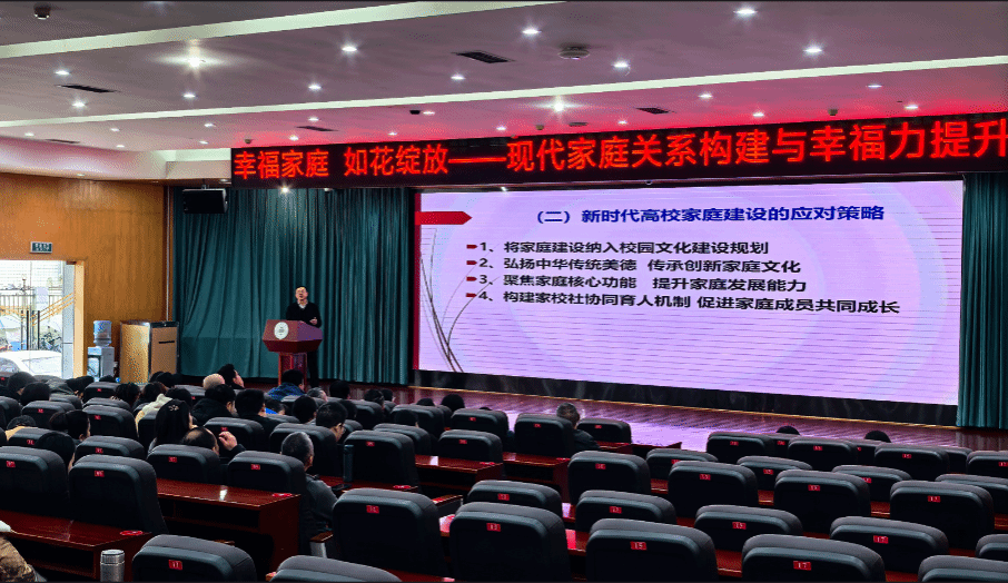 在长达两个小时的分享中,蒋志强教授以其深厚的学术功底和丰富的实践经验,为在场教职工带来了一场思想与情感的盛宴。他首先从“幸福家庭的核心要素”切入,深刻剖析了现代家庭中爱与责任、尊重与理解、共同成长的重要性,明确了幸福家庭的内在要求。随后,蒋教授直面现代社会给家庭带来的诸多挑战,如快节奏生活下的沟通缺失、工作与家庭的平衡难题、代际教育观念冲突等,并逐一给出了切实可行的应对策略。他重点讲解了“有效沟通、情绪管控与化解家庭矛盾的方法与技巧”,通过生动的案例和情景模拟,让教职工们深刻认识到有效沟通、情绪管理与矛盾化解在维系家庭和谐中的关键作用。