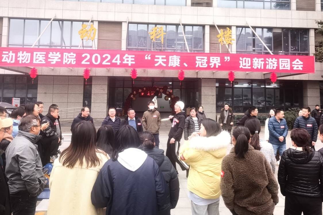 12月28号下午,动物医学院在第六教学楼下举行了一年一度的“天康、冠界杯”迎新游园活动。动物医学院党委书记贾仁勇、院长陈舜、党委副书记兼工会主席宋三多携全体教职工参加活动。