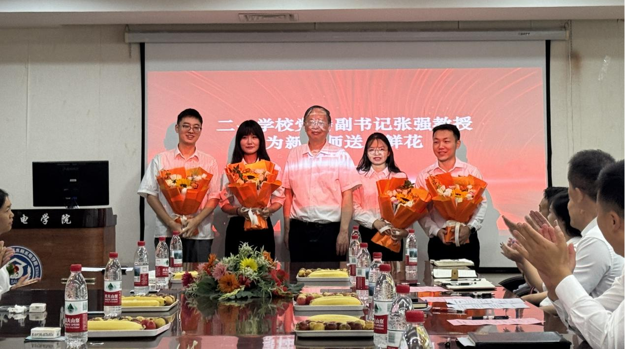 学校党委副书记张强首先向学院全体教职工送上节日祝福并为近两年新进教师送上鲜花。他高度肯定了在学院领导班子带领下,全院教职工共同奋斗所取得的各项成就。他要求全院教职工要不断灵魂拷问,审视自身是在进步还是后退。他希望学院能持续保持当前良好的发展势头,不断完善学科体系建设,扎实做好人才培养工作,夯实专业建设基础,努力开拓科研创新领域,全力支持社会服务发展。