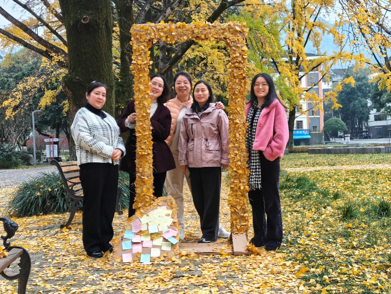 金黄银杏叶似蝶翼轻舞,繁茂黄果树似婆娑入影,行人穿行来来往往,学生活动蹦蹦跳跳,构成一幅幅鲜活的校园秋景图。老师们或驻足记录美景,或三五成群畅谈生活,或神态轻松享受清闲,欢声笑语随秋风阵阵回荡,大家在畅享中增进了沟通与情谊。