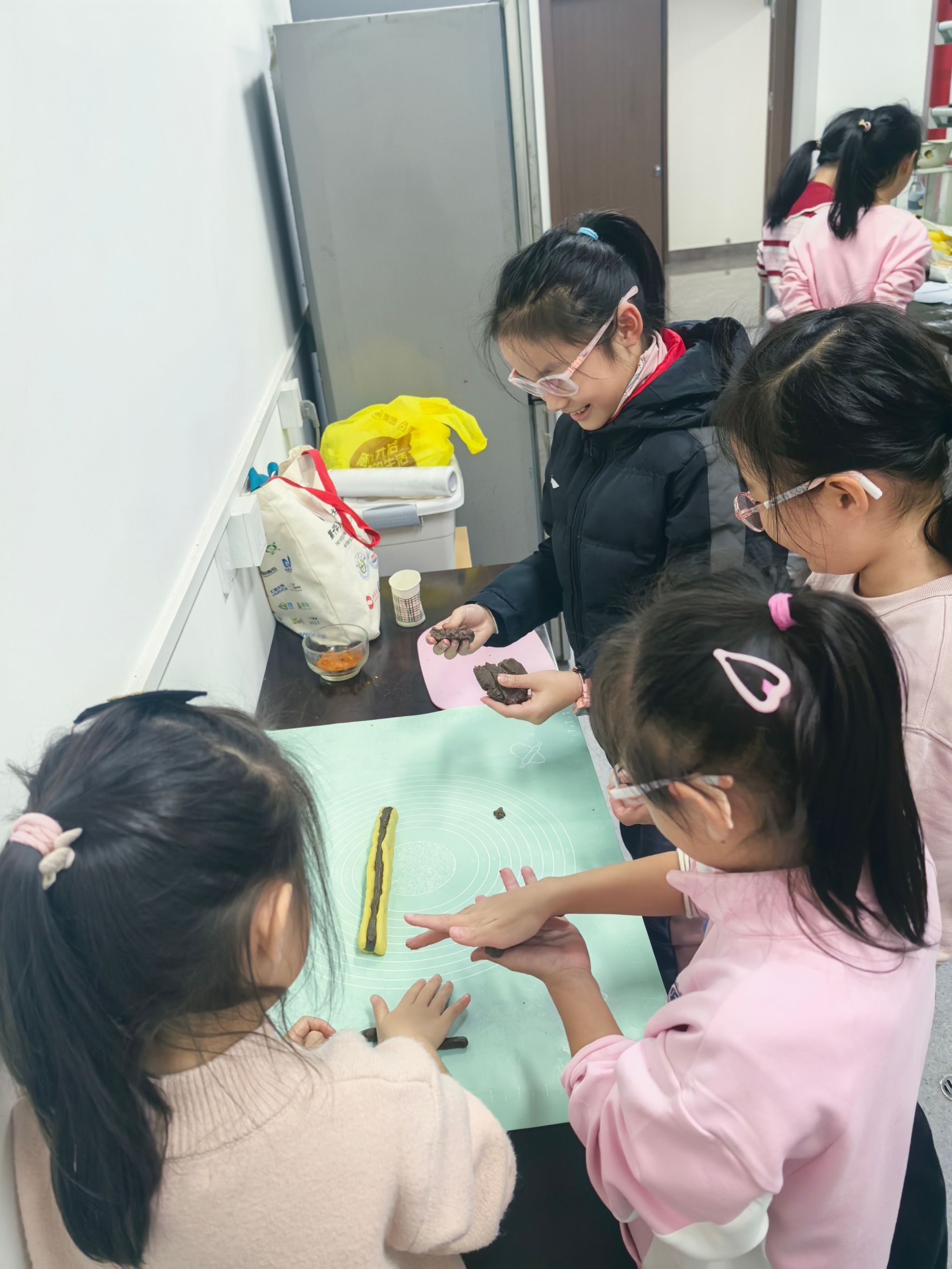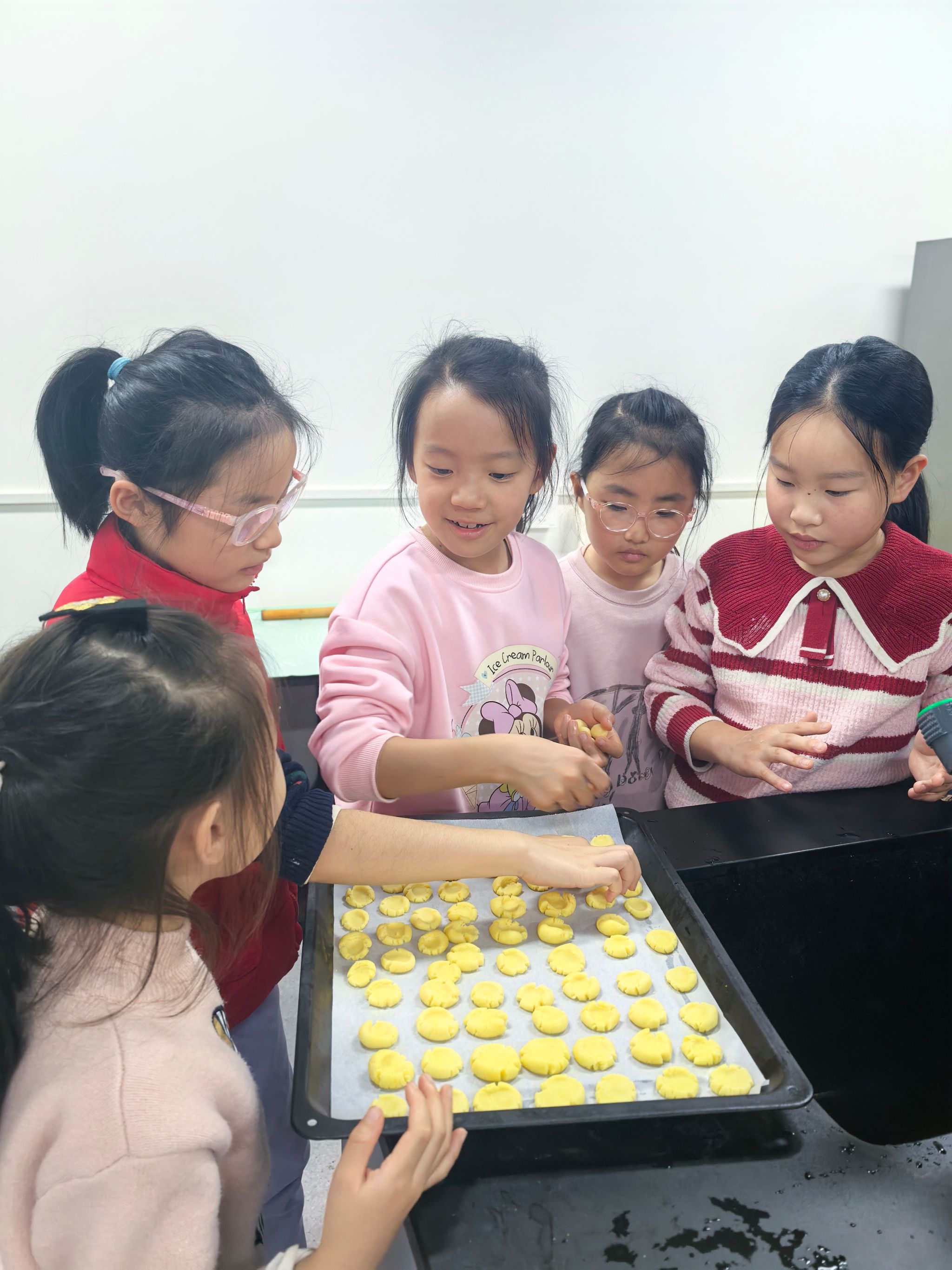 如果说上午的游戏是动感的盛宴,那么下午在品质实验室开展的烘焙活动则是一场甜蜜的创造。在品质室祁鹏飞教授、孔丽老师的悉心指导下,孩子们化身“小小烘焙师”,亲手制作蛋糕、蛋挞和饼干。从打蛋、和面到造型装饰,每一个步骤都充满了新奇与挑战。当香气四溢的烘焙作品新鲜出炉时,孩子们的脸上洋溢着满满的成就感。更令人感动的是,许多小朋友小心翼翼地将自己亲手制作的点心打包,纷纷表示要带回家与爸爸妈妈分享,这份纯真的孝心温暖了所有人。