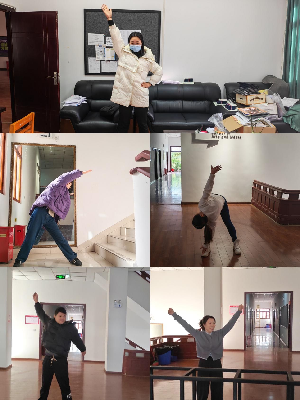 活动一经启动,便激发了全院教职工的广泛参与热情。学院工会指定跳操音乐,教职工自主选择场所打卡一周,大家身着轻便运动装,个个精神饱满。