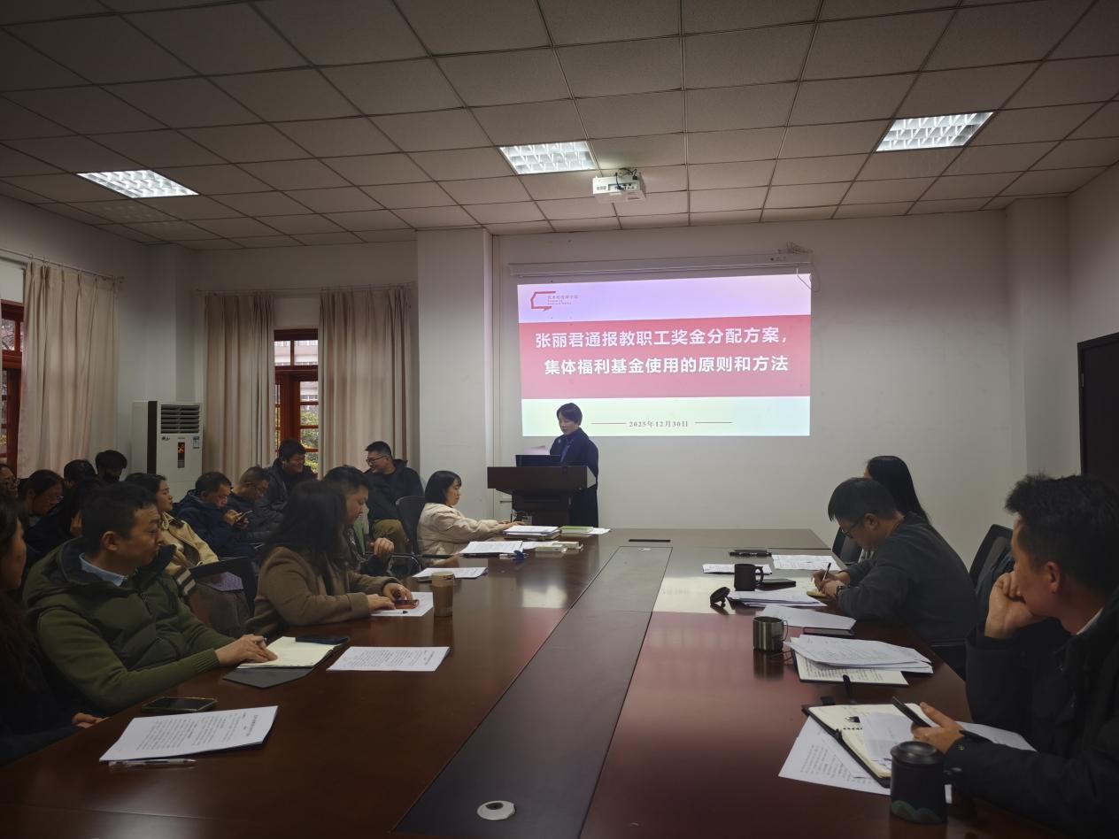 12月30日下午,艺术与传媒学院2025年度教职工大会暨工会会员大会在第四办公楼201会议室隆重召开,学院领导班子全体成员、学院工会委员会全体成员及全体教职工共同出席,会议由学院教代会主席马艳阳主持。